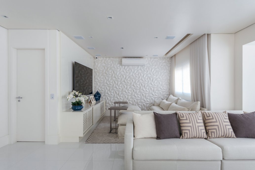 O conceito de design deste projeto foi baseado na escolha da cor branca como base, complementada por uma variedade de tecidos e texturas para gerar uma sensação de continuidade e conforto. Tons de cinza e azul foram cuidadosamente adicionados para conferir elegância e modernidade ao espaço. Desde os móveis até os detalhes decorativos, diferentes nuances de cinza e azul foram estrategicamente incorporadas para criar um contraste equilibrado, garantindo um ambiente sofisticado e contemporâneo.