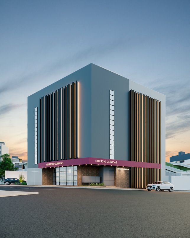 Este edifício de arquitetura contemporânea apresenta uma volumetria sólida e imponente, caracterizada por linhas retas e uma composição minimalista. A fachada é marcada pelo uso de brises verticais metálicos que cumprem tanto uma função estética quanto funcional, controlando a incidência solar e conferindo dinamismo à composição.
