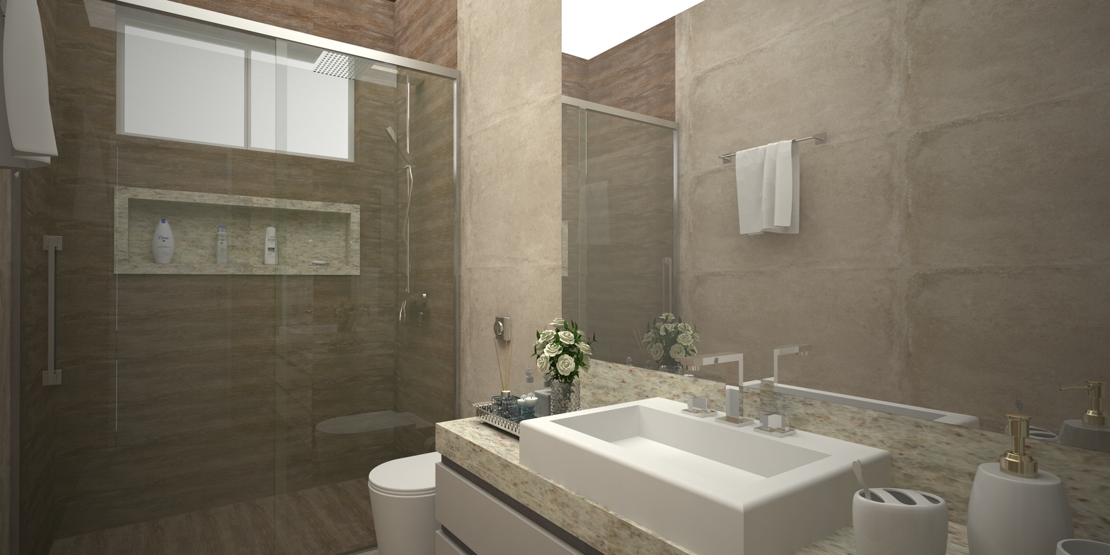 Os painéis de madeira estão em alta na decoração! A madeira é um elemento natural dito quente, e isso quebra o frio dos ambientes com piso frio (porcelanatos e cerâmicas), assim como lugares com cores neutras que necessitam de um toque para trazer vida e aconchego, como em banheiros onde a presença de muitos revestimentos no piso e nas paredes deixa o ambiente bem frio. Onde não é possível usar madeira, pode ser usado porcelanato que imita madeira, como dentro do box do banheiro, nos pisos externos e nas fachadas. Neste projeto especificamos o Jequitibá Natural Decapê em composição com o Matiz Nude, ambos da @portobello_sa