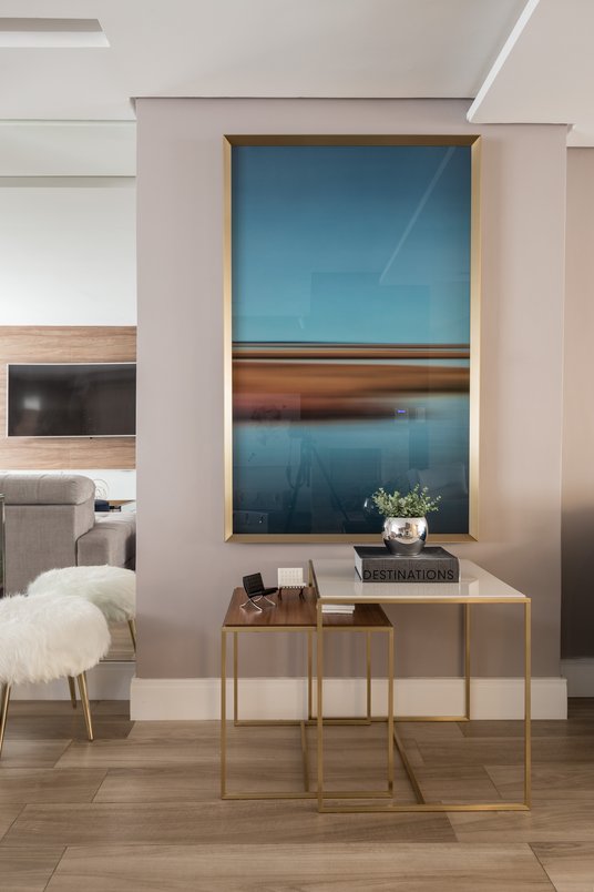 Atmosfera contemporânea e luxuosa na casa de jovem casal e sua filha Para o projeto de interiores desta casa localizada no bairro Chácara das Pedras em Porto Alegre,o escritório Bibiana Menegaz Arquitetura de Atmosfera planejou uma grande reestruturação na sua planta original para atender as necessidades dos clientes. A casa de quatro pavimentos foi comprada com pisos e banheiros acabados, porém muitos dos revestimentos existentes nas áreas sociais foram revistos a fim de conceber ao lar o estilo dos moradores. Os clientes almejavam uma integração total dos espaços sociais para curtirem o tempo juntos em família. Para tal, muita demolição foi necessária para criar esta reunião dos espaços. A cozinha e a área de serviço dividiam um espaço hoje contemplado exclusivamente pela cozinha integrada. E para unir e ampliar o living, o lavabo central ao espaço foi transferido para um espaço de depósito pertencente anteriormente a cozinha. Ainda, as paredes da churrasqueira foram demolidas e uma porta janela de vidro permitiu o espaço externo da piscina adentrar e iluminar o interno. Desta forma a planta antes compartimentada se uniu e proporcionou diversos ambientes de convívio, como sala de tv, hall, estar, sala de jantar, bar, estar contemplativo e cozinha. A suíte do casal foi pensada a receber a quantidade de armários necessários que teve a solução através da criação de um closet. Os banheiros receberam apenas armário, sem grandes modificações no estilo existente. Quanto ao decor, ao longo dos 230 m², a atmosfera contemporânea foi impressa, prezando o aconchego, estética e personalidade dos clientes, com cores vibrantes e detalhes luxuosos que valoriza m as formas arrojadas como o sofá azul arredondado e a mesa oval em laca branca . O uso das cores é um dos diferenciais do projeto, já que os moradores não tiveram medo de ousar, e cada um dos cômodos recebeu atenção especial. O lavabo recebeu um papel de parede verde que combinou com a cuba em vidro. Para o living integrado o azul foi o tom escolhido para estofados, almofadas e quadros, conectando os tons neutros, dourados e bronze arquitetando assim um ambiente luxuoso e sem exagero onde materiais nobres dialogam com traços austeros e elegantes. Em vidro argentato bronze e bancada em pedra Quartzito Cygnus Escovado a cozinha se destaca em um ambiente esteticamente impactante, mas ao mesmo tempo, acolhedor. Com o espaço agora aberto para o pátio com piscina, o projeto de interiores foi concebido como um santuário de paz e convívio familiar. E apesar dos espaços amplos e luminosos em função das demolições, a iluminação teve papel importante na busca por uma atmosfera intimista e sofisticada. Os dormitórios e escritório dão continuidade à decoração da casa mas com toque de personalidade. Na suíte master, a cabeceira alta com capitonê traz ar romântico. Destaque para a penteadeira que permite abrir as portas, ter objetos à mão e ainda uma excelente iluminação para maquiagem. E para o quarto da filha, destaque ao papel de parede rosa petit poà dourado. No terceiro andar, o escritório privativo do pai de família serve de refúgio para trabalho e diversão. Os livros e a escrivaninha criam um ambiente propício para trabalho. O sofá e a tv com video-game garantem as horas de descanso. Destaque para a porta integrada ao armário. Nome do Projeto: Interiores Casa Chácara das Pedras Escritório: Bibiana Menegaz – Arquitetura de Atmosfera Website: www.bibianamenegaz.arq.br E-mail: bibiana@bibianamenegaz.arq.br Arquiteto responsável: Bibiana Menegaz Localização: Bairro Chácara das Pedras - Porto Alegre – RS - Brasil Ano de conclusão da obra: 2017 Área total construída (m2): 260m² Fotógrafo: Marcelo Donadussi Website do fotógrafo: www.mdonadussi.com.br