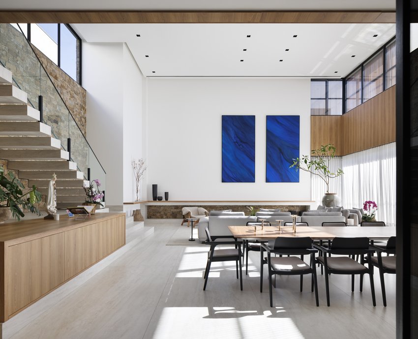 Essa arquitetura minimalista foi desenvolvida com o princípio de que "menos é mais", combinando simplicidade, elegância e funcionalidade de forma perfeita. Ela cria um ambiente que reflete a identidade dos clientes e se destaca pelo equilíbrio e harmonia dos elementos. A escolha por linhas e formas puras é um reflexo dessa proposta, onde cada elemento é pensado de maneira simples, porém funcional. O uso de materiais como o brise amadeirado e a pedra foi uma escolha inteligente para equilibrar a sobriedade com o aconchego e a elegância que a casa exige.