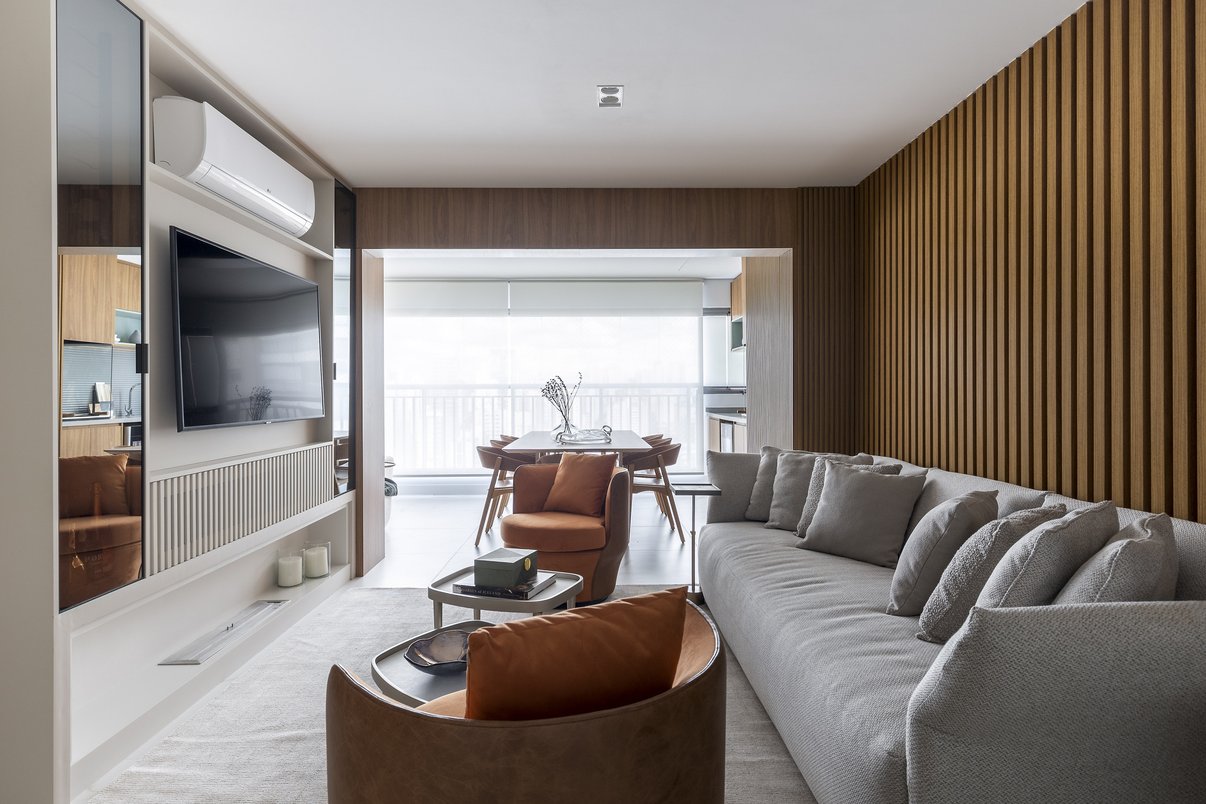 APARTAMENTO COM APROXIMADAMENTE 150,00M² , FEITO PARA UMA FAMÍLIA QUE ADORA RECEBER E NÃO ABRE MÃO DE AMBINETES INTEGRADOS E QUE PREZEM PELO CONFORTO. COM TONS NEUTROS E USO DE MADEIRA, OS PEQUENOS DETALHES EM DOURADO CONFERIRAM O CHARME DO CONCEITO DO PROJETO. ACONCHEGANTE E PERSONALIZADO , ESSAS SÃO AS PALAVRAS QUE DEFINEM ESSE PROJETO.