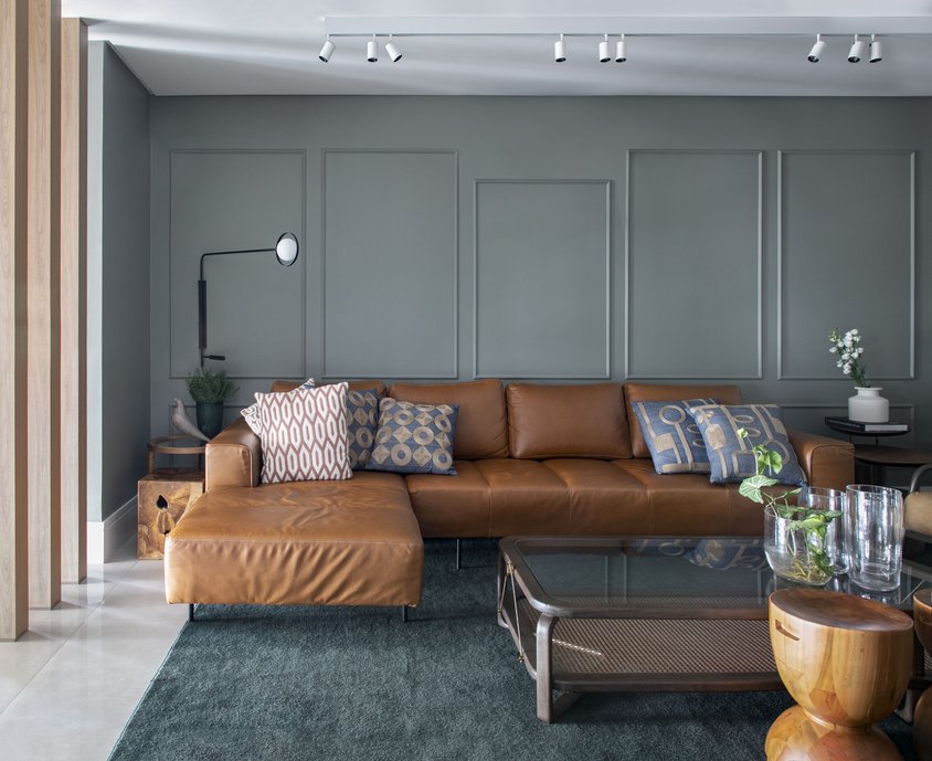 Um apartamento pensado para garantir praticidade e aconchego ao casal. Os arquitetos optaram em utilizar a marcenaria em tons de verde e madeira clara, que juntamente com a pedra natural utilizada na adega climatizada, trazem jovialidade e valorizam os ambientes. O cooktop localizado na ilha proporciona funcionalidade e fluidez no dia a dia, características essenciais para os clientes que gostam de colocar a mão na massa.