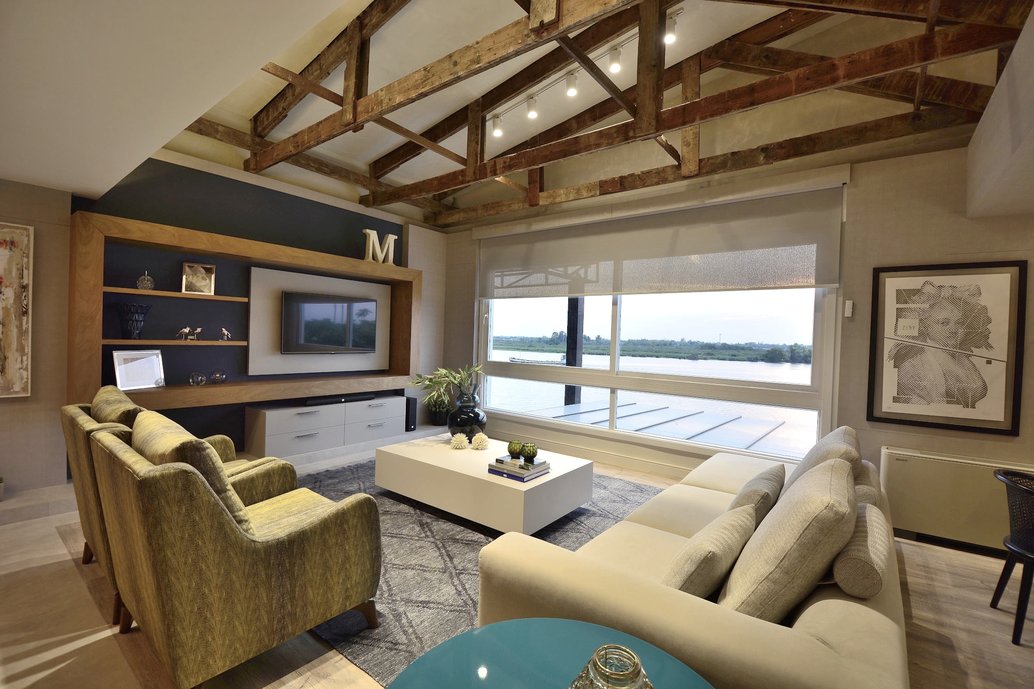 O conceito do nome (traduzindo do francês: Loft Azul) é uma referência direta a vista privilegiada que o ambiente tem do Rio Guaíba, o qual banha a cidade de Porto Alegre. Como todo loft, o ambiente de 85m2 é despojado, com referências de um estilo mais urbano, porém elegante e acolhedor. É exatamente este o conceito que acredito que uma residência necessita para ter personalidade e conexão direta com seus ocupantes. É transformar a experiência do morar em algo que conecte o ser humano com tudo aquilo que o deixa confortável, sem exageros e excessos. O loft foi dividido em hall de entrada, jantar, estar, cozinha, home office, quarto e banheiro. Em parte da área foi mantida a estrutura de madeira original do prédio, criando um cenário diversificado e ampliando a altura. O mobiliário é praticamente todo autoral, ou seja, foram desenhados pelo arquiteto e fabricados especialmente para o projeto. Do nome derivou boa parte da definição de cores para o espaço, uma vez que o azul deveria fazer parte considerável do projeto. A cor base será o cinza, em diversos tons, sempre composto com outras cores como o azul petróleo, o preto, o caramelo, etc. Além dos móveis especiais, impossível não perceber alguns elementos importantes para a decoração do imóvel como a cabeceira em couro ecológico na cor caramelo, os revestimentos cerâmicos usados na parede da entrada, o tecido Chevron do jantar e as pedras naturais e exóticas do banheiro (mármore Blue Roma) e da cozinha (mármore Travertino Romano cinza).