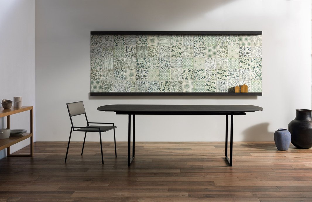 Azulejaria interpretada com tecnologia e design. A técnica da azulejaria artesanal com o uso da serigrafia para estampar as peças em uma versão com impressão digital e pigmentos de última geração. Uma tradução da ?natureza em casa? a partir de grande diversidade de desenhos botânicos que formam painéis decorativos. O azul do céu e do mar e o verde dos jardins e florestas reforçam a presença da natureza no design de interiores.