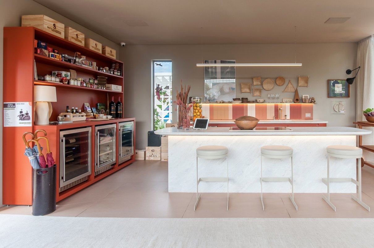 Nosso cantinho do vinho dentro de casa teve uma seleção de materiais mais próximos ao natural em cores e texturas. A paleta saiu da terra e caminhou ao vinho passeando pelos terrosos e roses até chegar a cor púrpura da bebida.